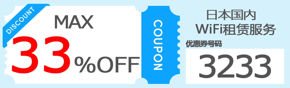 ■日本Wi-Fi租赁服务优惠活动 – 最高优惠33%!